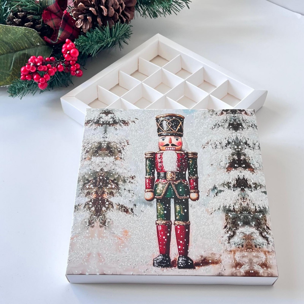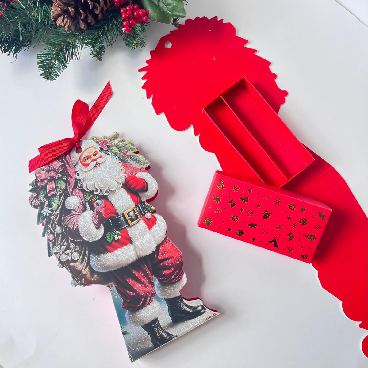 16 Bölmeli Simli Bonbon Çikolata Kutusu-Noel Baba
