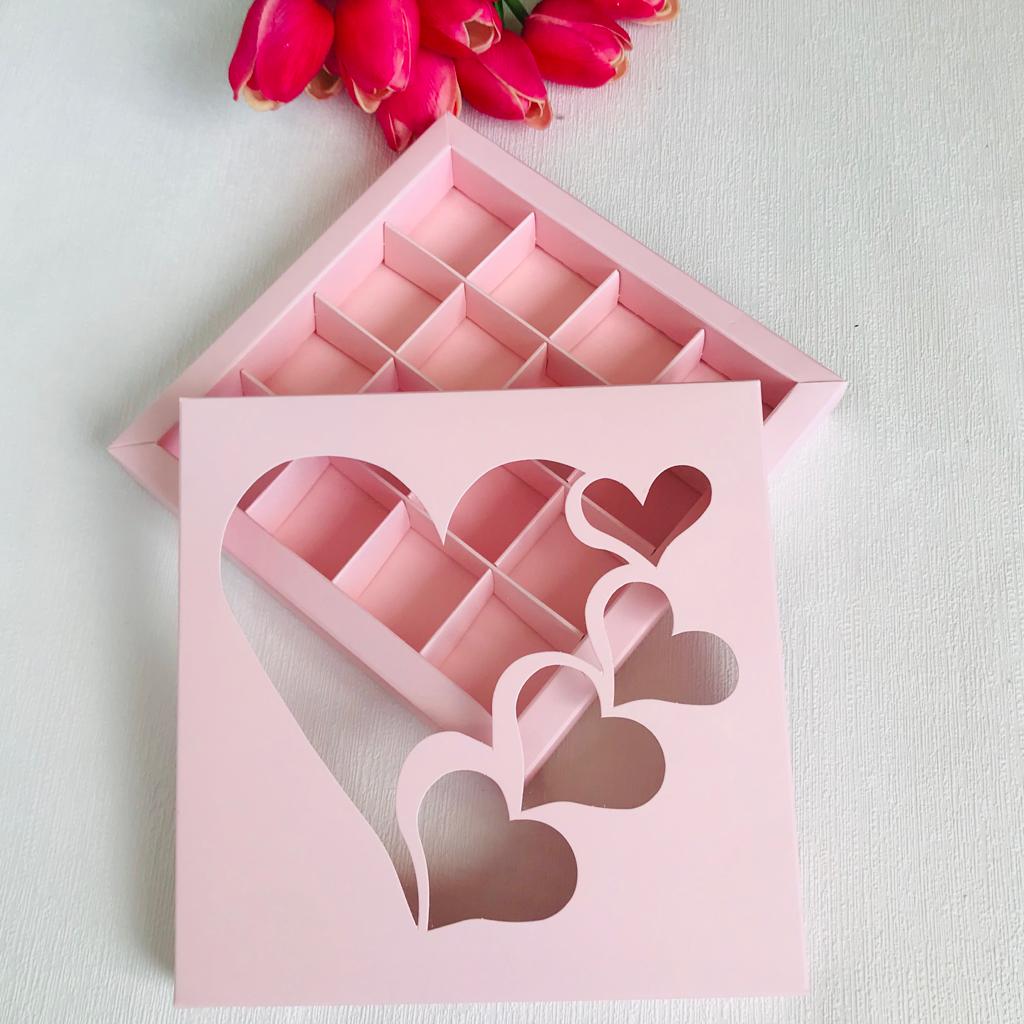 16 Bölmeli Kalp Tasarım Bonbon Çikolata Kutusu