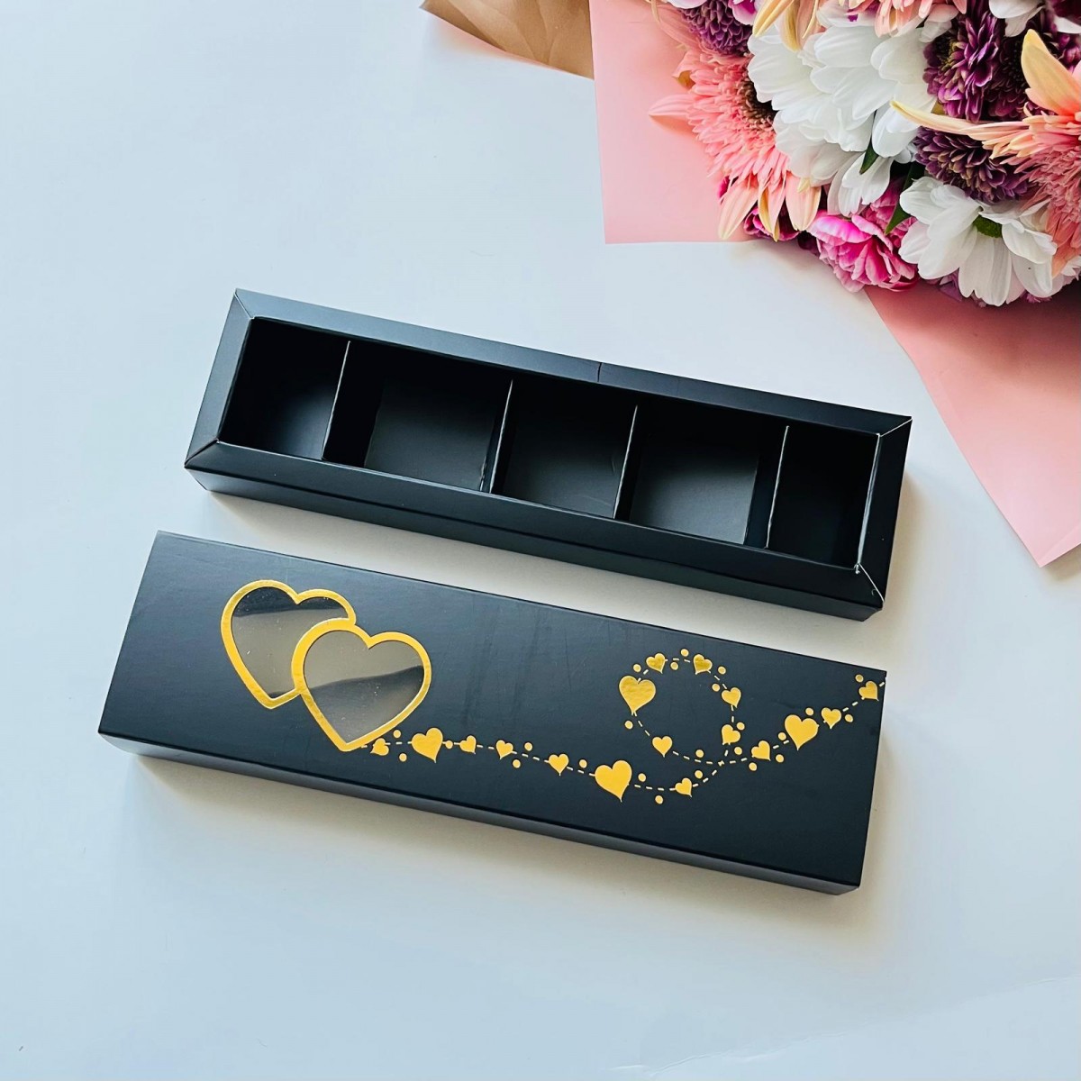 5 Bölmeli İkili Kalp Tasarım Gold Yaldızlı Çikolata Kutusu