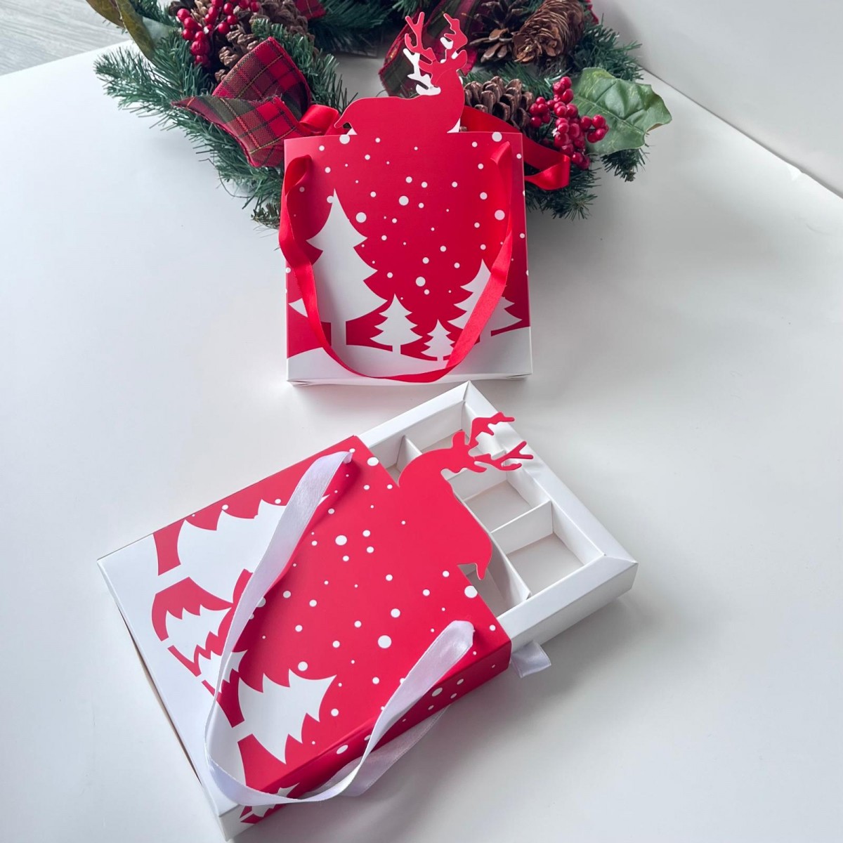 9 Bölmeli Yılbaşı-Geyik Temalı Çanta Model Kutu