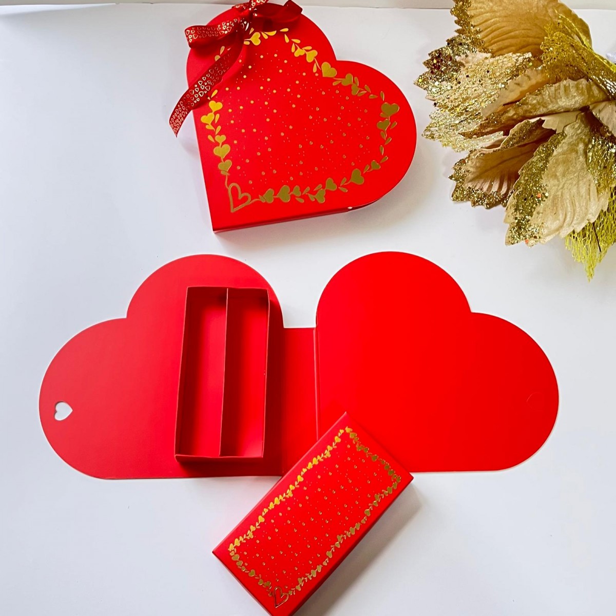5 Bölmeli İkili Kalp Tasarım Gold Yaldızlı Çikolata Kutusu