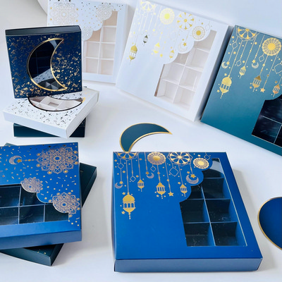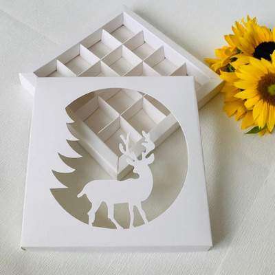 16 Bölmeli Karton Çikolata Kutusu Yılbaşı Desen-Madlen Uyumlu