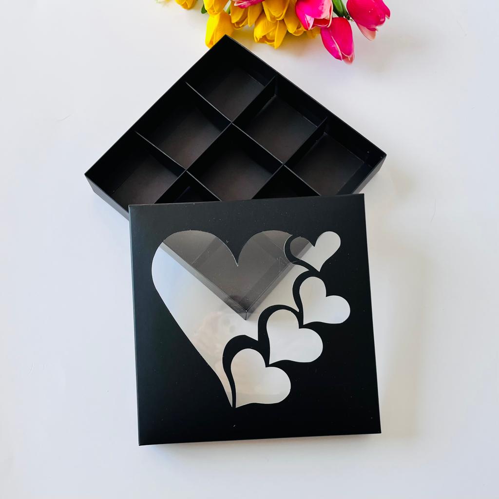 21x21x4 Pencereli Kalp Tasarım Karton Kutu (9 Bölmeli)