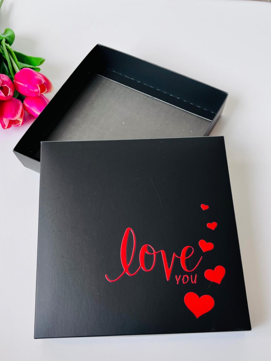 18x18x4 Kırmızı Yaldız Love Baskılı Karton Kutu