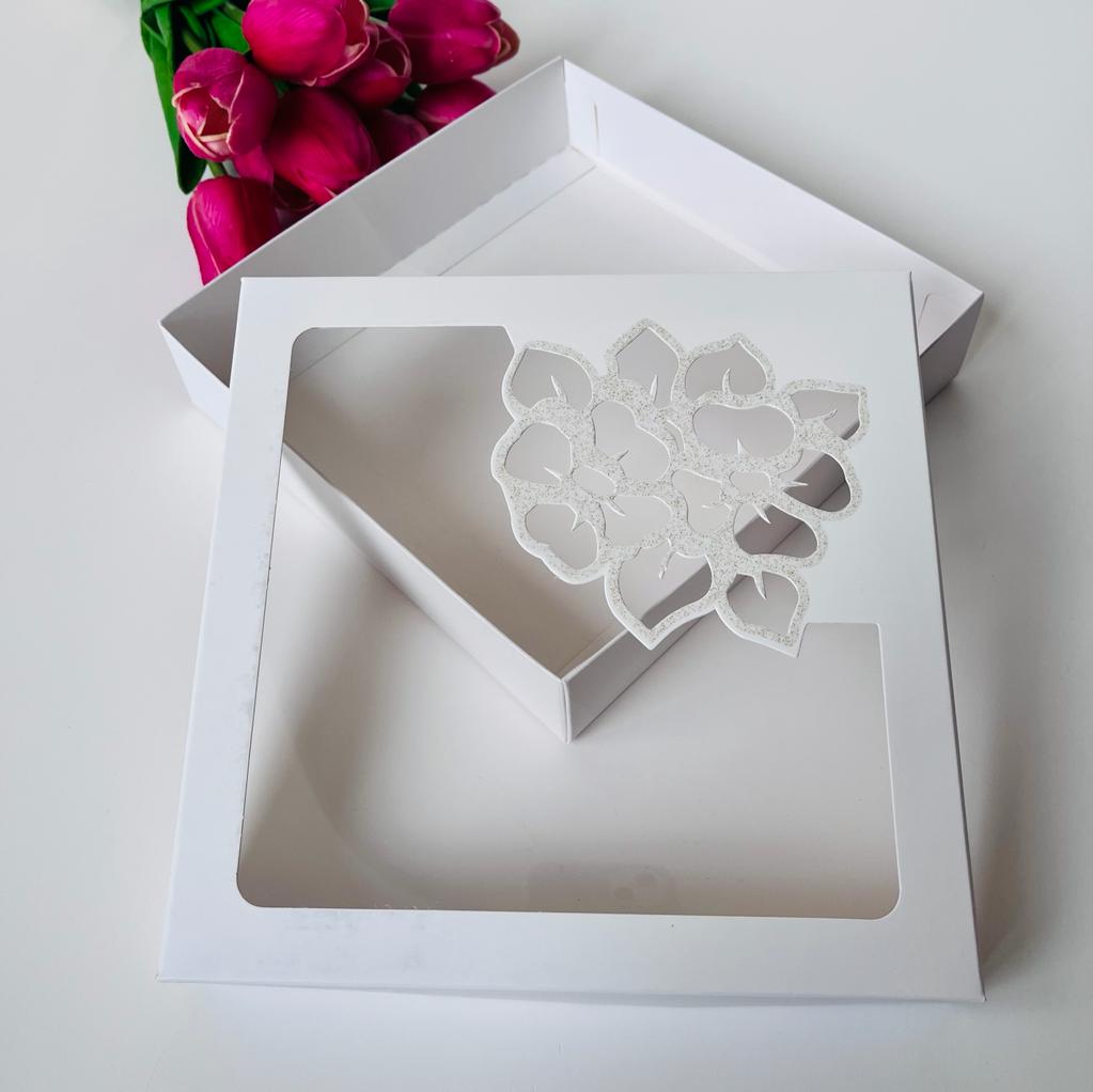 21x21x4 Pencereli Kalp Tasarım Karton Kutu