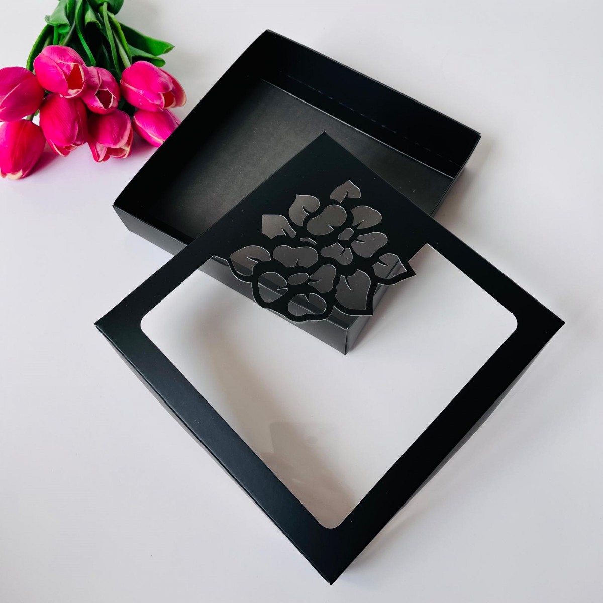 25x30x9 Pencereli Karton Kutu Siyah-Kırmızı
