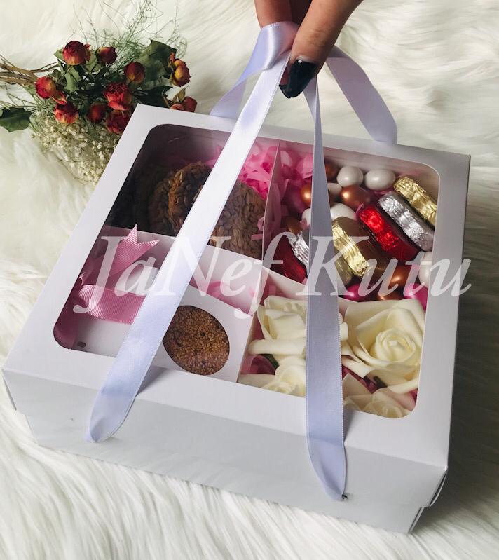 25x25x10 Pencereli Taşıma Kutusu-4 Odacıklı (GİFT BOX)