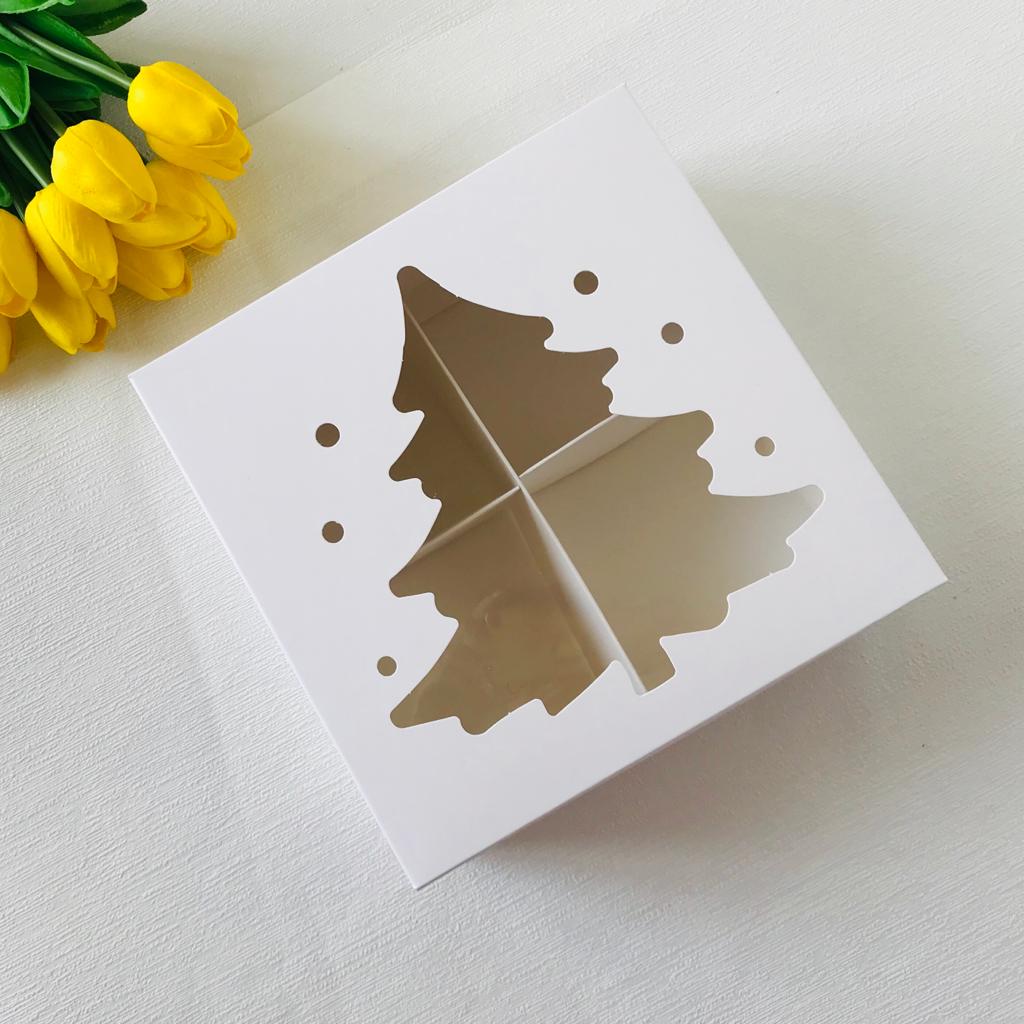 25x25x10 Pencereli Kutu Yılbaşı Desen-4 Bölmeli