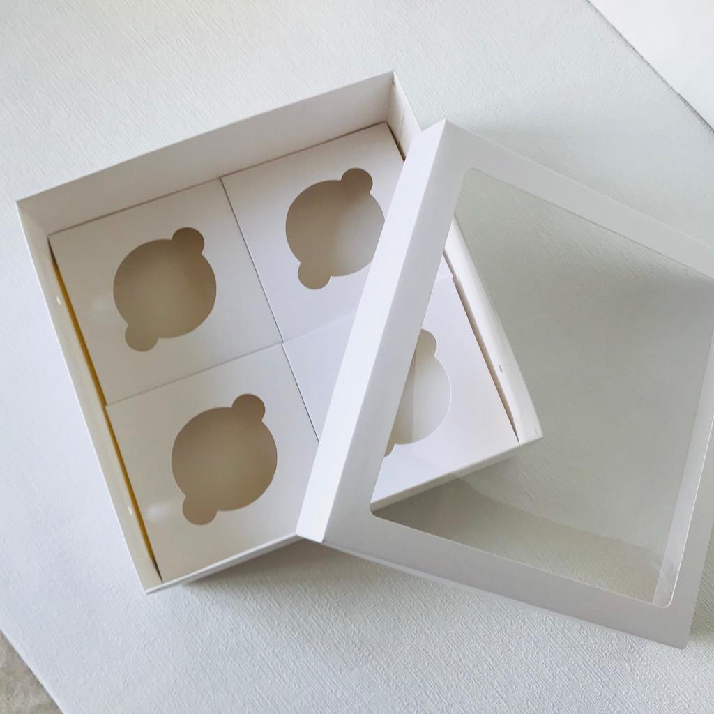 21x21x8 Pencereli Cupcake Kutusu 4 Bölmeli