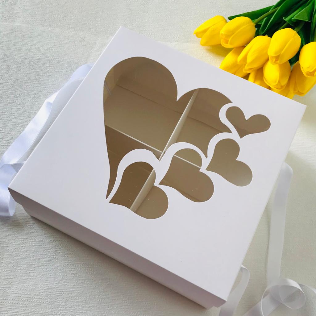 21x21x8 Kalp Tasarım Karton Kutu 4'lü
