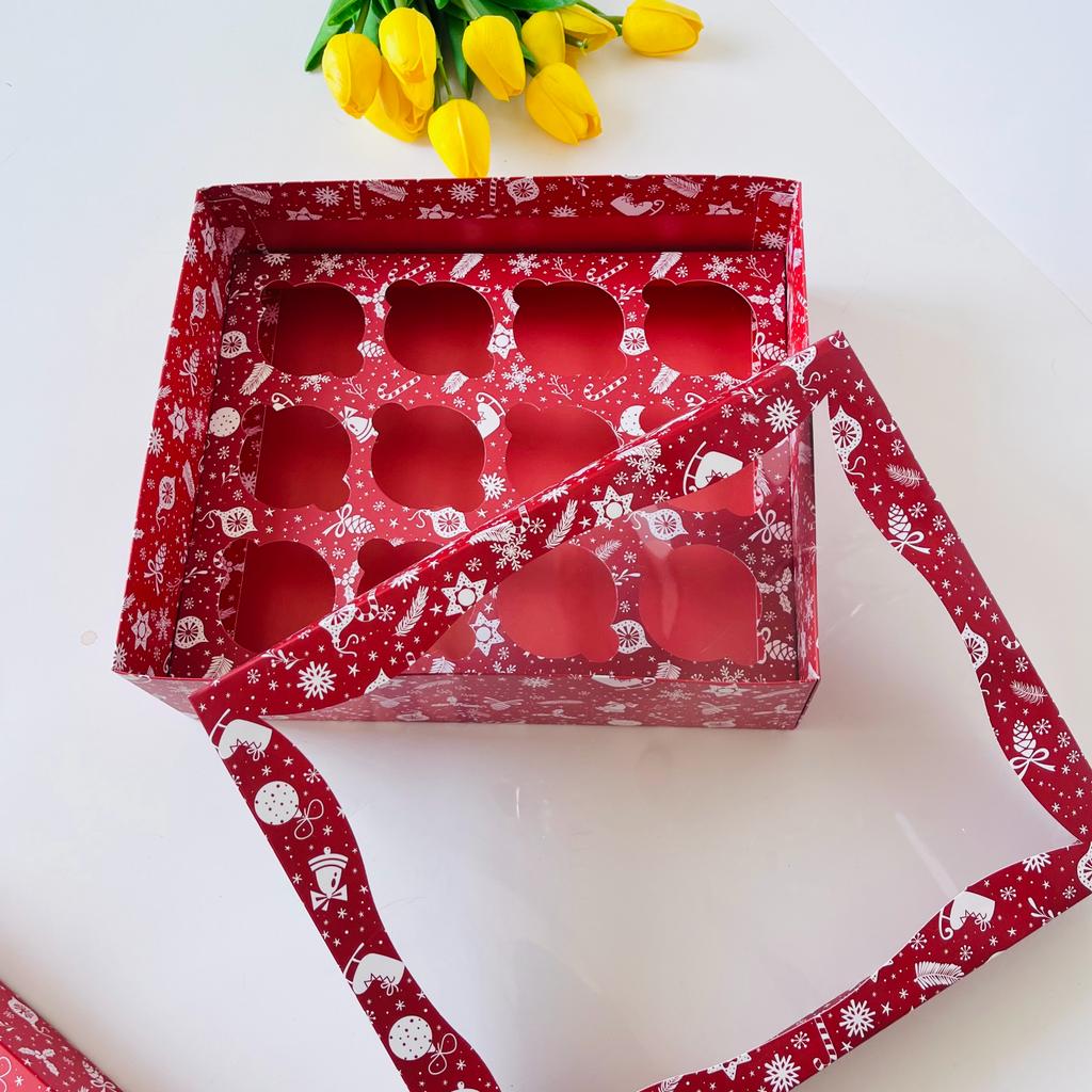 25x30x9 Pencereli Cupcake Kutusu Yılbaşı Desen 12'li