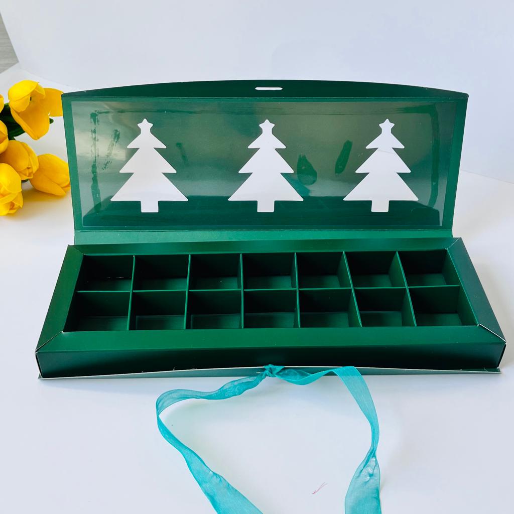 14 Bölmeli Çikolata Bonbon Kutusu-Yılbaşı (yeşil-kırmızı)