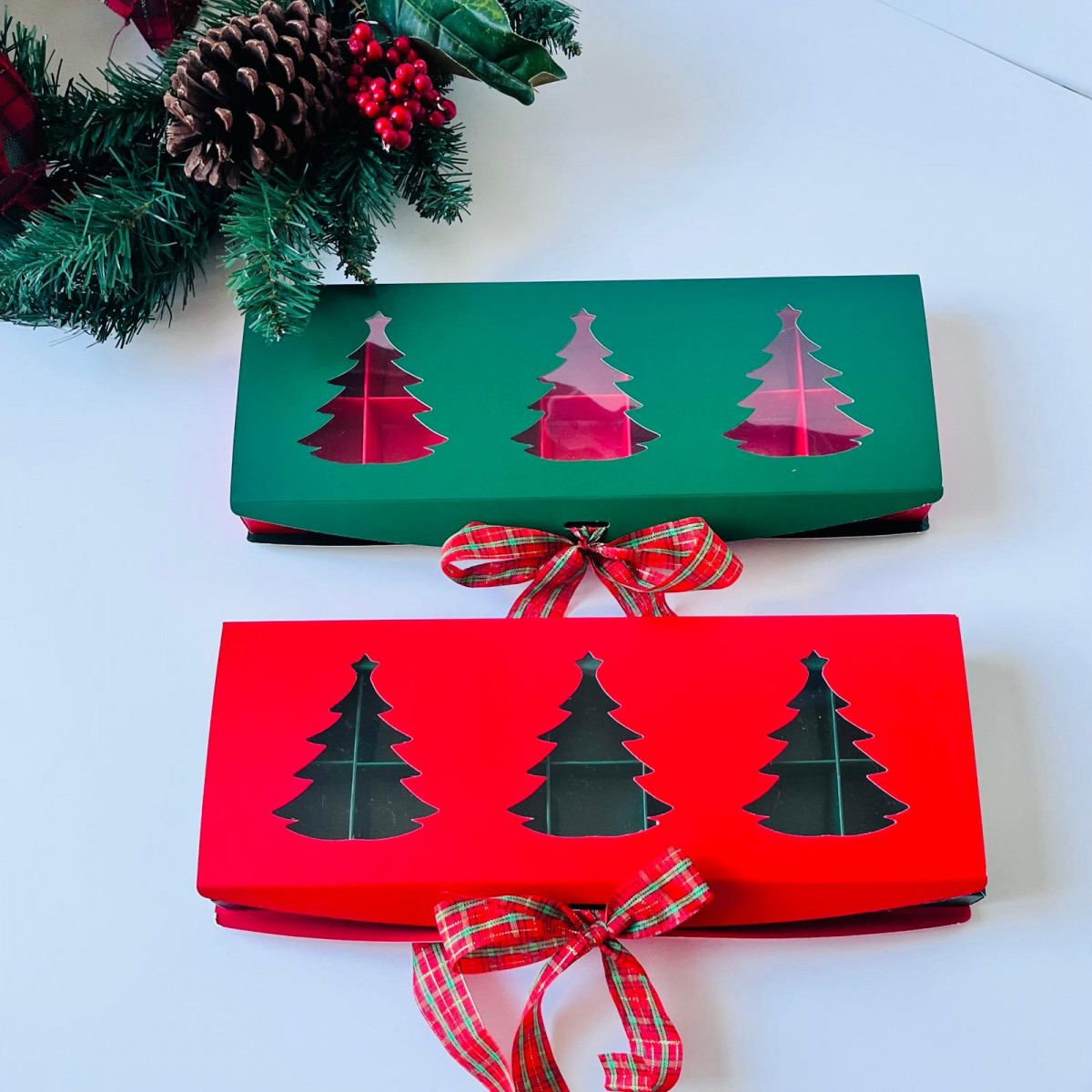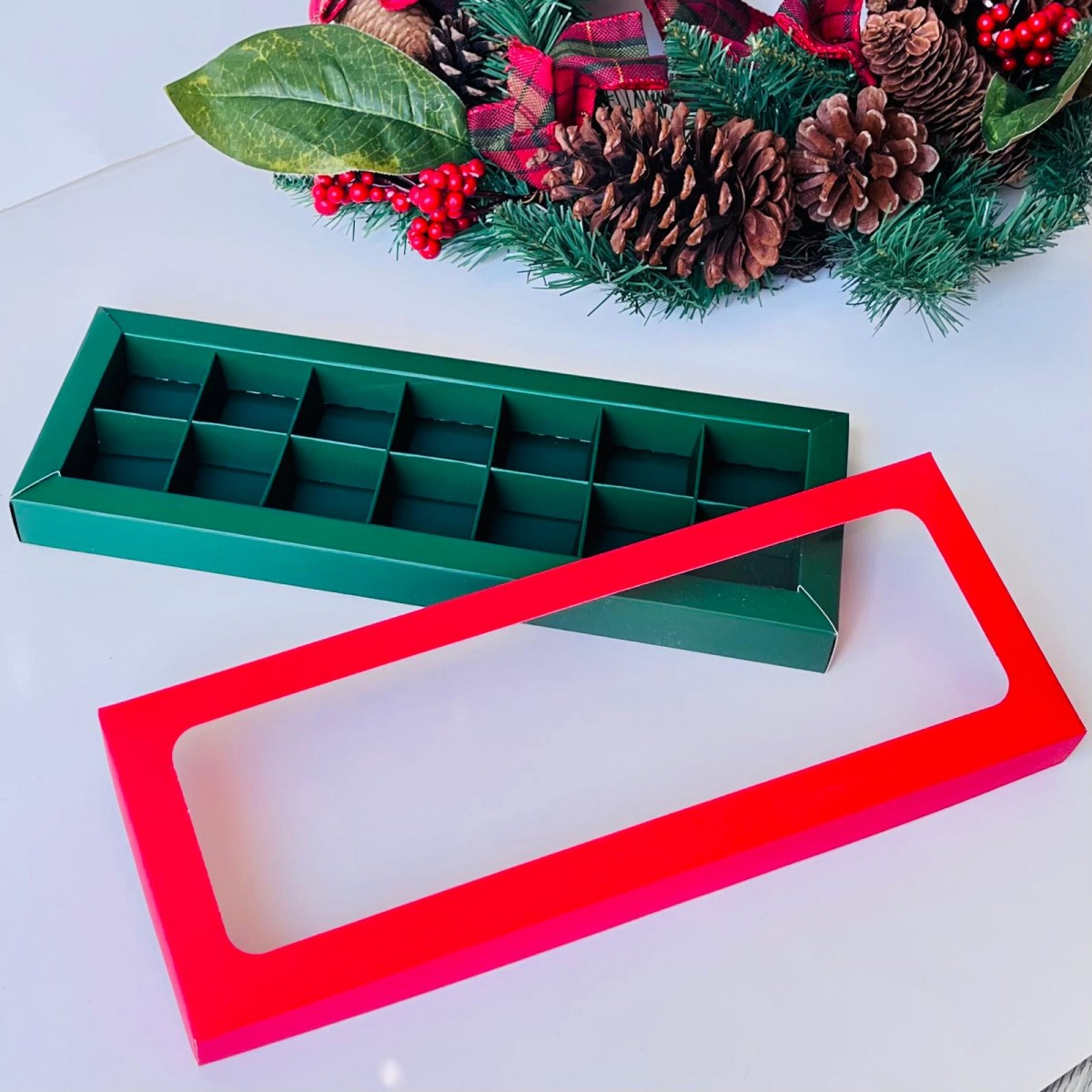 14 Bölmeli Pencereli Çikolata-Bonbon Kutusu (yeşil-kırmızı)