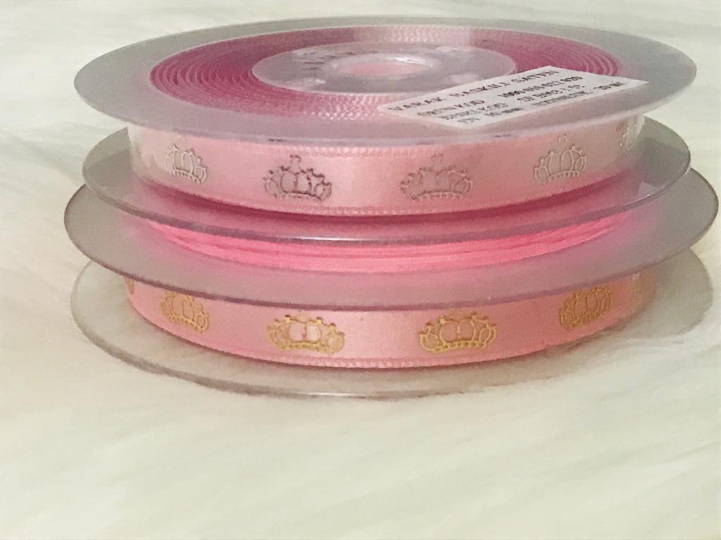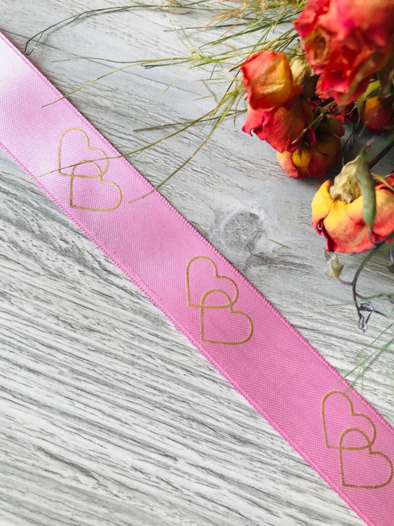 Saten Gold Çizgi Detay Kurdele Pembe 10 mm-10 m